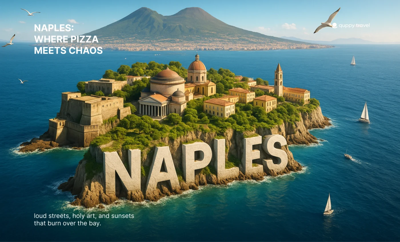 Naples is a tangle of contradictions: sacred and blasphemous, messy and meticulous, dangerous to your schedule and generous to your soul. You don’t “do” Naples—you let it do you. Let the scooters sermonize, the crust blister, the volcano loom, and the bay glitter like it knows a secret. When you leave, you won’t be tidy. You’ll be grinning. And hungry again.