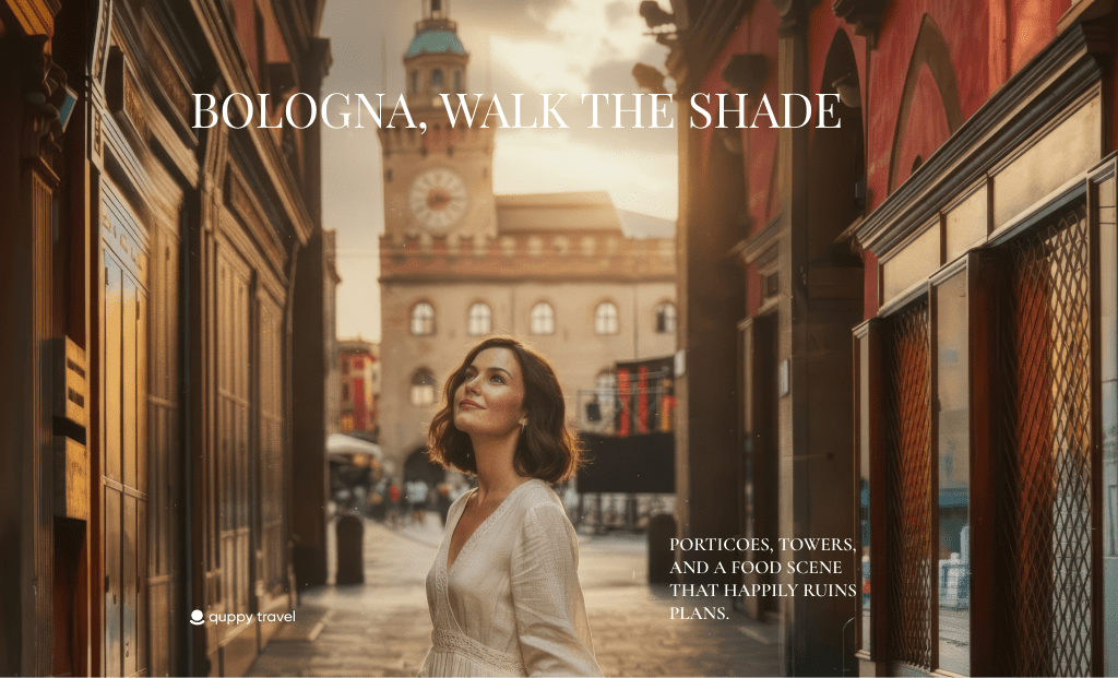 Bologna doesn’t shout. It invites. Twenty-five miles of porticoes pull you forward like a velvet ribbon—terracotta columns, shadow, sunlight, repeat. Students rush past with espresso to go, church bells punch the hour, and somewhere a saucepan hisses with butter and sage. This is a city built for walking, eating, learning, and then eating again.