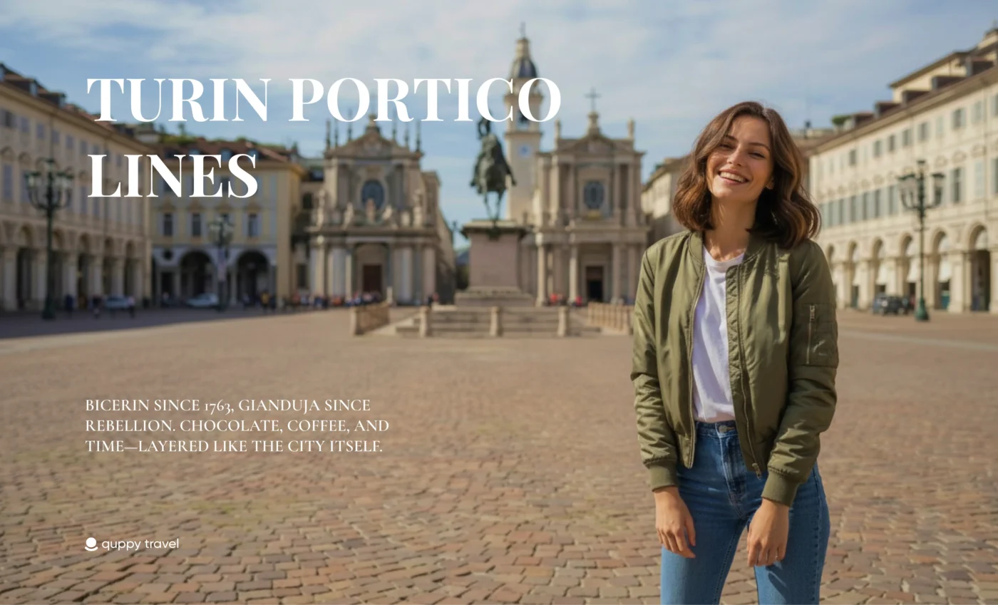 Italy’s first capital with a silver-screen soul: royal avenues, porticoes for rainy wanderers, and the scent of cacao braided into daily life.