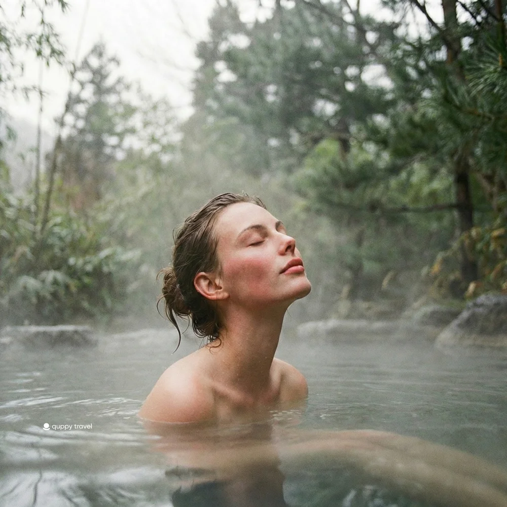 Imagine this: You step outside naked into the crisp, 5°C mountain air. You slowly sink up to your collarbones into steaming, 40°C mineral water that flows directly from the volcanic earth. There are no phones allowed. No talking is expected. You just sit, feeling the intense contrast of heat and cold, watching the steam rise and weave through the ancient pine trees. It is a complete physical and mental unclenching that washes away months of corporate stress.